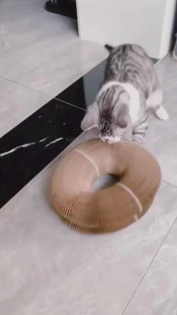 The flexible cardboard lets your cat scratch and chase at the same time.